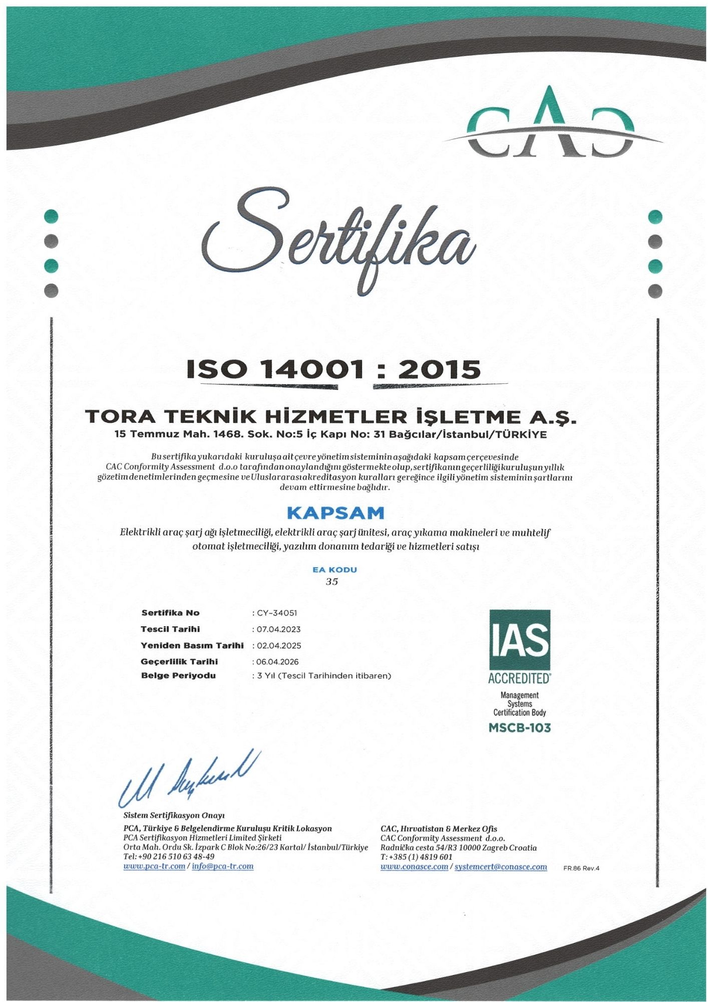 TORA, Çevre ve Şehircilik Bakanlığı Yeterlilik Belgesine sahip nadir firmalardan olup, TORA ÇEVRE Toprak ve su kirliliği tespit ve giderilmesine yönelik geliştirdiği sistemlerle hizmet vermektedir.