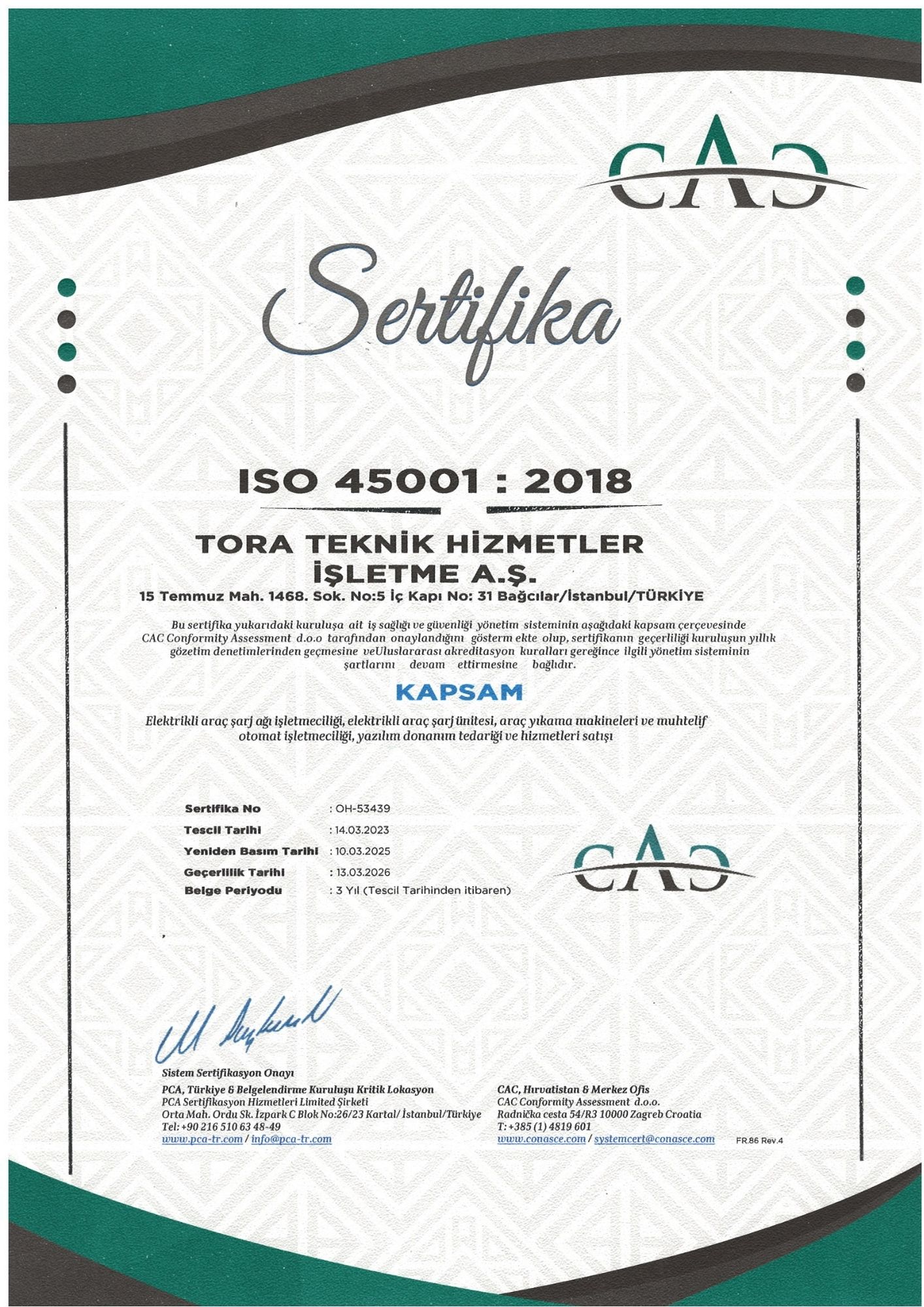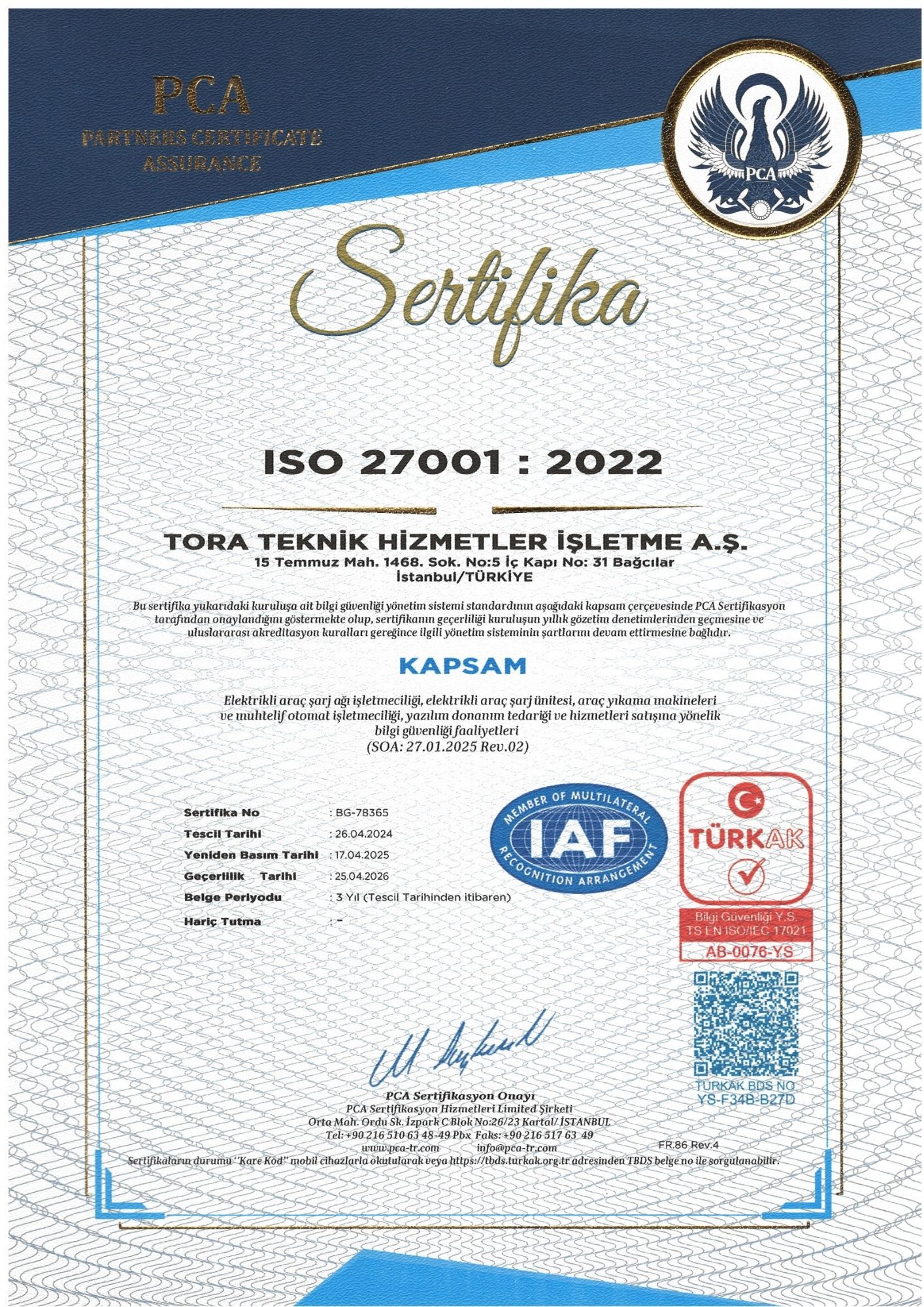 1998 yılında İstanbul’da kurulan Tora A.Ş., Elektrikli Araç Şarj, Petrol, LPG, CNG sektörünün işletim, ekipman ve teknik emniyet ihtiyaçlarına yönelik mühendislik, danışmanlık ve AR-GE hizmetleri vermektedir. Projelendirme, uygulama, koruyucu bakım, üretim, satış faaliyetlerinin yanı sıra ihtiyaca yönelik profesyonel çözümler üretmektedir.
